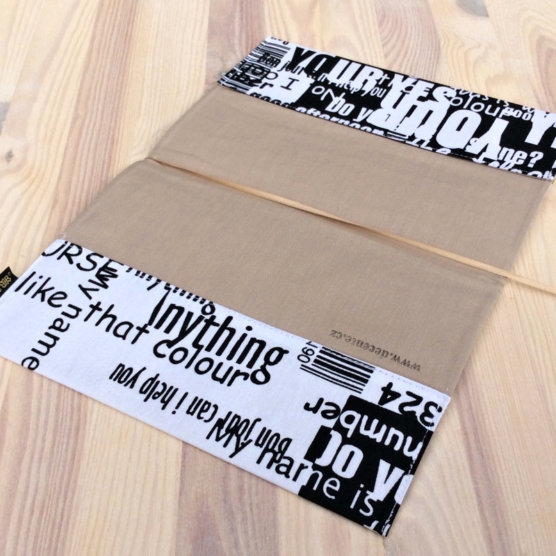 Vysoce kvalitní obal na knihu české ruční výroby. Obal je ušitý ze zahraniční bavlny s nápisy, čísly a čárovými kódy  na bílém podkladu.